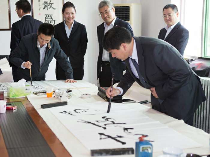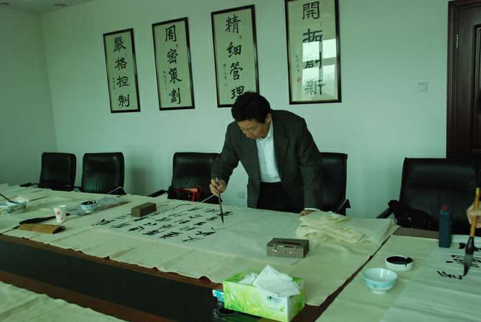 为弘扬传统文化,丰富员工业余生活,5月6日上午,呼和浩特德辉智能监控设备有限公司举办了首届书画艺术学习交流活动。本次活动邀请了中国书法家协会会员孟云飞博士、中国书法家协会理事张铜彦先生、中国书法家协会编辑出版委员会副主任王荣生教授、人民艺术家协会理事于瑛先生等国内知名书画大师,各位书画大师在活动现场进行了艺术创作表演,挥毫泼墨,交流技艺,为呼和浩特德辉智能监控设备有限公司留下了数十副墨宝,还对部分员工的书画作品进行了悉心指导。公司员工现场欣赏了书画大师的艺术创作,并聆听了有关书画艺术鉴赏知识的介绍,部分员工还在活动现场进行创作,听取书画大师的讲解示范和点评。