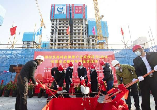 集团公司党委副书记王建红在致辞中首先向关心和支持本项目的社会各界人士表示衷心感谢,他指出,菜园街及枣林南里棚户区改造项目喜迎主体结构封顶,标志着项目建设工作已经取得了阶段性成果。在后续的施工建设中,项目部要继续坚持“敬业诚信、创新超越”的企业理念,弘扬“志存高远、脚踏实地”的企业精神,严格落实“安全第一、质量第一、工期最短、成本最优”四个管理目标,把结构封顶当作新的起点,以航空企业的品质和标准化施工工艺,携手各方倾力打造精品工程、标杆项目,早日实现居民回迁入住的安居梦。
